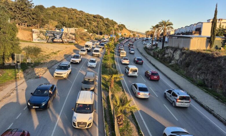 Kıbrıs Şehitleri Caddesi, Konacık Atatürk Bulvarı ve Ortakent Kavşağı çevresinde araç kuyrukları kilometrelerce uzadı.