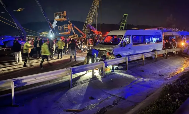 Bursa-Yalova kara yolu Dürdane mevkisinde meydana gelen kazada sürücülerin kimlikleri henüz belirlenemeyen 16 S 2316, 16 S 0602, 16 S 4776 ve 16 S 5143 plakalı 4 işçi servisi ile 16 GE 363 plakalı otomobil çarpıştı. Kaza sonrası çevreden geçen sürücülerin ihbarı üzerine olay yerine çok sayıda polis, jandarma, itfaiye, UMKE ve 112 Acil Sağlık ekibi sevk edildi.